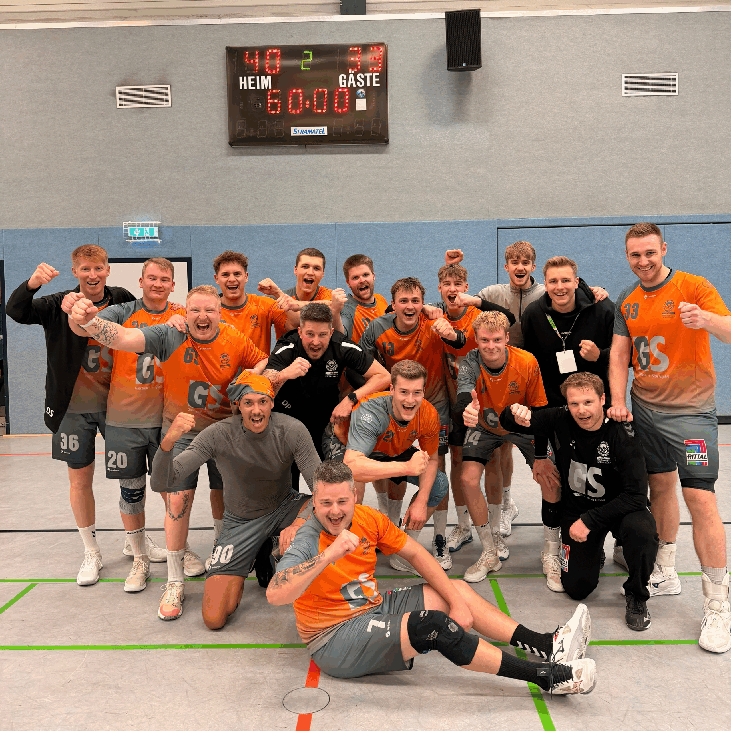 Nach der Pause blieb die Partie zunächst ausgeglichen, ehe wir nach dem 18:18 (34. Minute) spürbar in der Abwehr zulegten und mit einem starken 5:1-Lauf auf 23:19 davonzogen. Bis zur Schlussphase spielten wir uns eine komfortable Führung heraus und konnten den Abstand lange Zeit auf 6-7 Toren halten. Kurz vor Ende erhöhten wir nochmals das Tempo und erzielten den herbeigesehnten 40ten Treffer. Nach 60 Minuten stand ein klarer 40:33 Heimsieg auf der Anzeigetafel. Wir stehen nun weiterhin mit 16:4 Punkten (durch den direkten Vergleich) auf dem zweiten Tabellenplatz.