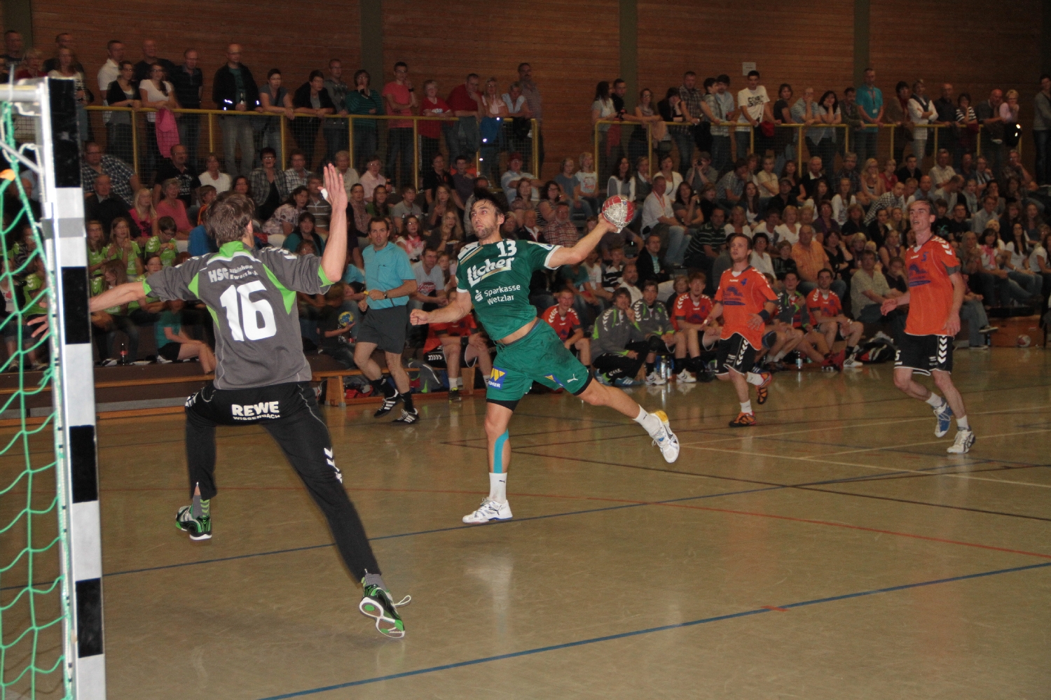 Anlässlich des 100. Geburtstages des TV Eibelshausen gewann die Truppe aus Dutenhofen und Münchholzhausen vor 600 begeisterten Zuschauern in der Holderberghalle beim B-Bezirksligisten HSG Eibelshausen/Ewersbach mit 48:15 (28:9). Fotos: Joachim Köster